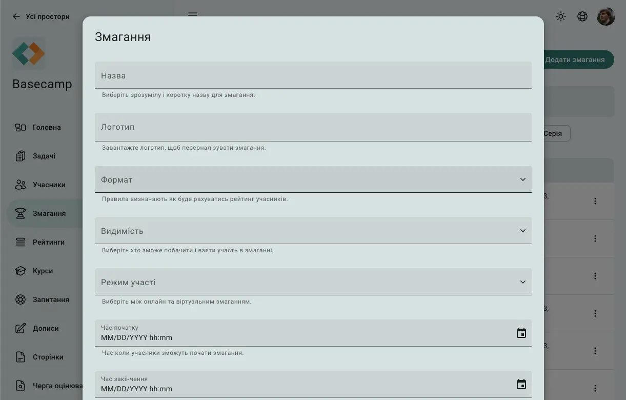 Complete the contest creation form: